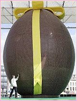 The egg measured 8.32 metres high. Twenty-six craftsman worked altogether 525 hours to build the egg. They needed 1950 kg of chocolates!
